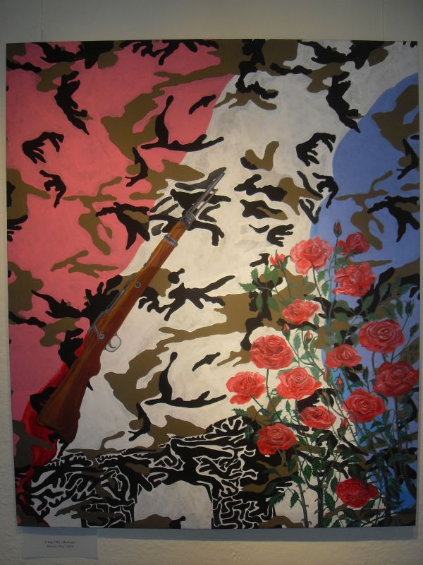 Odgovori so preprosti in hkrati zapleteni. Marinka Radež jih je ponovno iskala s čopičem v roki. V to jo je zapeljalo vojaško maskirno platno iz Bihaća, ki je leta 2009 po naključju zašlo v njen atelje v povsem drugem življenju na prelepem otoku. Hotela je spremeniti uporabno vrednost platna, nekaj, kar je namenjeno vojni, preobraziti v umetniško delo in ga tako onesposobiti za prvotni namen. Barvanje tankov v roza je vedno doživljala kot pomemben simboličen akt. Začetek slikanja z akrilom je bil intuitiven, zanimalo jo je, kaj ji pripoveduje belina, ko na platnu ostane le še ena originalna barva. Cikel je nastajal pet let, predvsem zaradi pogostega izogibanja temi, platno pa je zadostovalo za 13 slik. V zadnjo sliko Vstop prepovedan je zaradi aktualnosti vkomponirala delo slikarja M. Ribarića – Marina, ki je nastalo leta 2009, tik pred slikarjevo smrtjoMARINKA RADEŽ, rojena 1957 na Jesenicah, je v Ljubljani končala študij filozofije in primerjalne književnosti. S trebuhom za kruhom je šla od Ljubljane prek Kölna, Münchna do Tuzle in pristala na otoku Hvaru; njena poklicna pot jo je vodila od poučevanja, novinarstva, humanitarne dejavnosti do slikarstva. Zadnjih 13 let je slikarstvo njena temeljna življenjska dejavnost. Staro posestvo v vasi Dol na Hvaru je spremenila v odprti atelje. To je projekt, namenjen likovnemu ustvarjanju s številnimi likovnimi delavnicami za otroke in odrasle, njen ustvarjalni in permanentni razstavni prostor. Doslej je razstavljala v Zvezni republiki Nemčiji (Köln, Aichach), Avstriji (Deutschfreistriz) in Sloveniji (Ljubljana). Redno razstavlja v javnih prostorih na otoku Hvaru.
